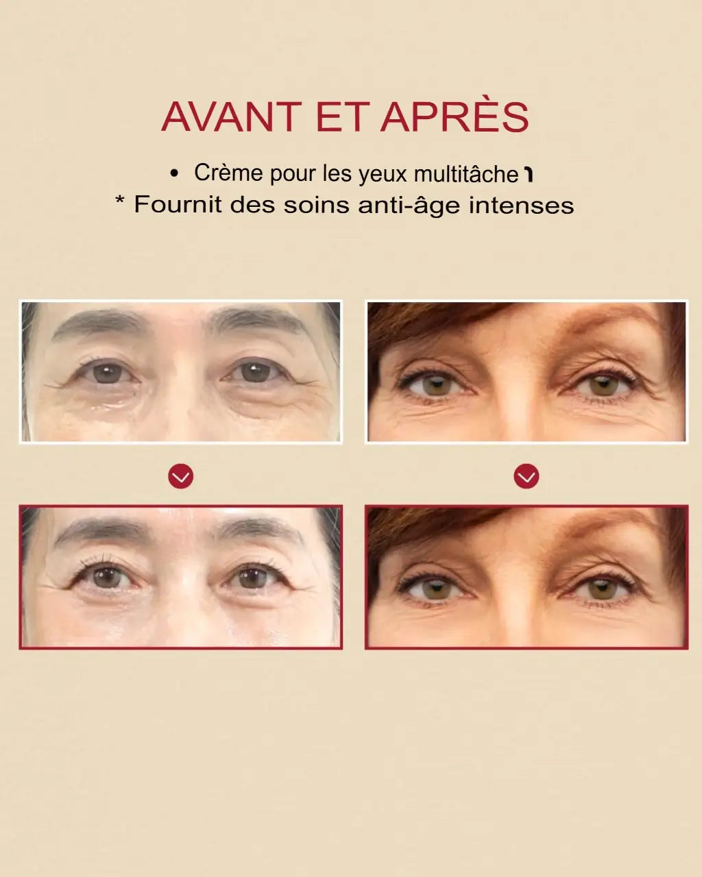 Appliquez une petite quantité de crème autour des yeux, matin et soir, sur une peau propre. Massez doucement pour favoriser l'absorption. Convient à tous les types de peau, particulièrement recommandé pour les peaux matures.