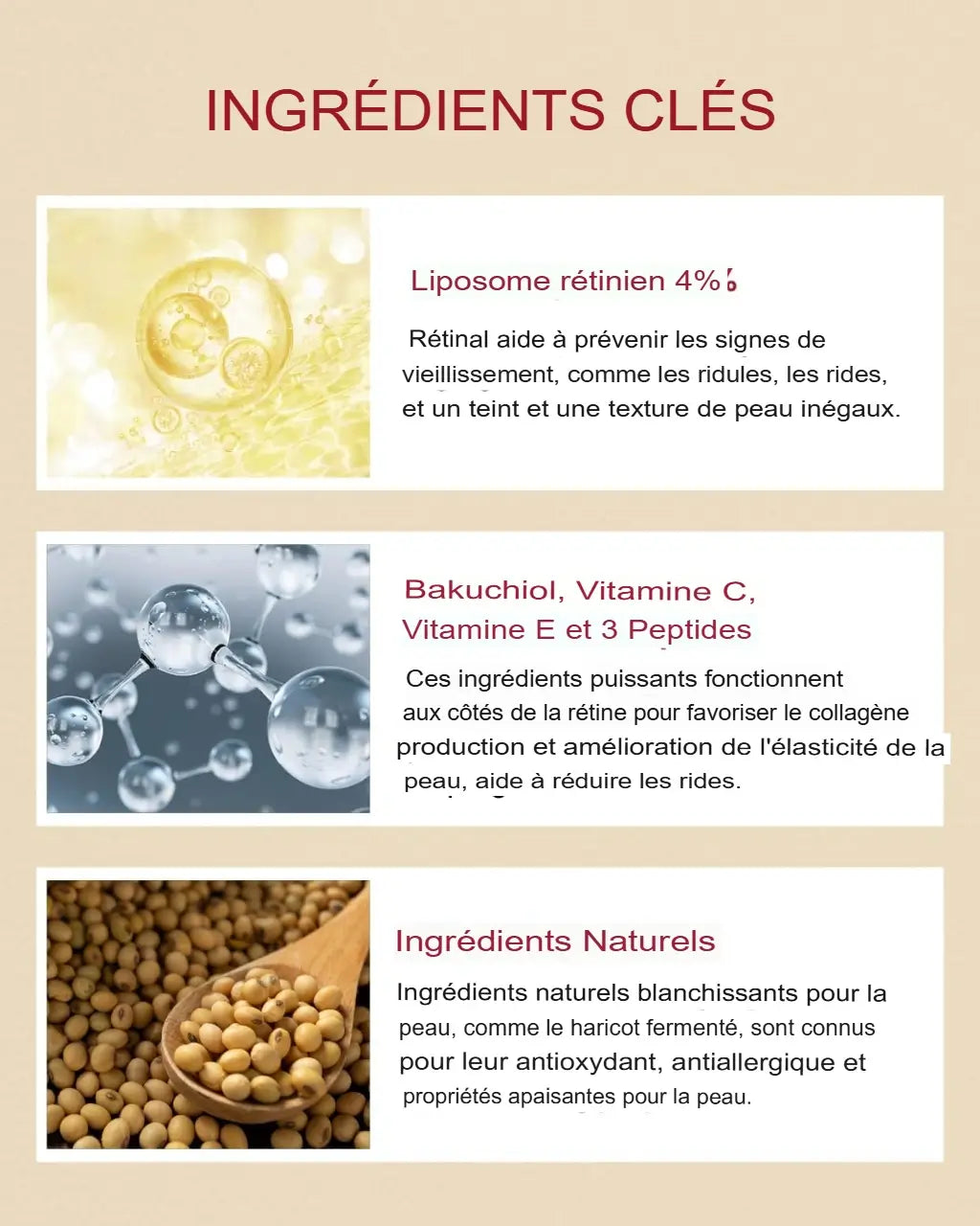 Liposome Rétinal 4 % : Aide à prévenir les signes du vieillissement, réduit la production de sébum et améliore la texture de la peau.